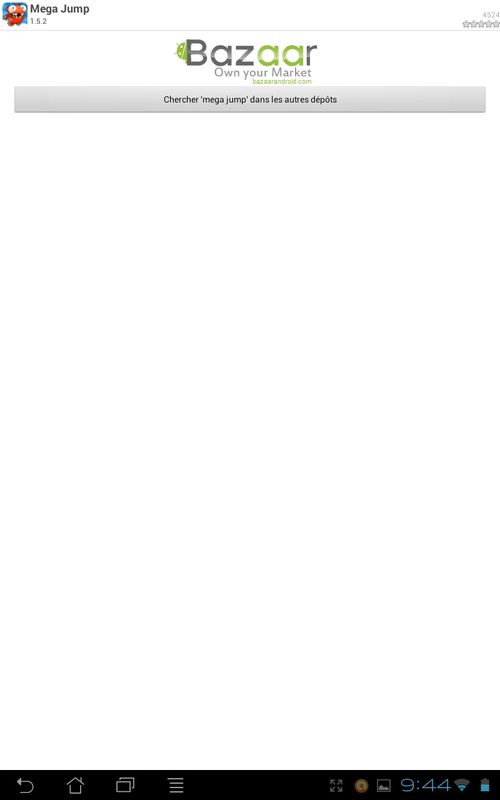 Pour exemple ici je vais télécharger Mega Jump (application gratuite disponible sur le google play), mais vous pouvez télécharger ce que vous voulez. Je vais donc effectuer une recherche avec l’outil de recherche disponible en haut de l’écran à droite. Deux choix se posent à vous, le premier l’application est disponible dans vos dépôts et apparaît dans la liste, vous allez alors appuyer dessus puis sur « Install », le téléchargement va s’effectuer dans la barre de notifications une fois fini appuyez sur « Installer » et attendez que votre application s’installe.