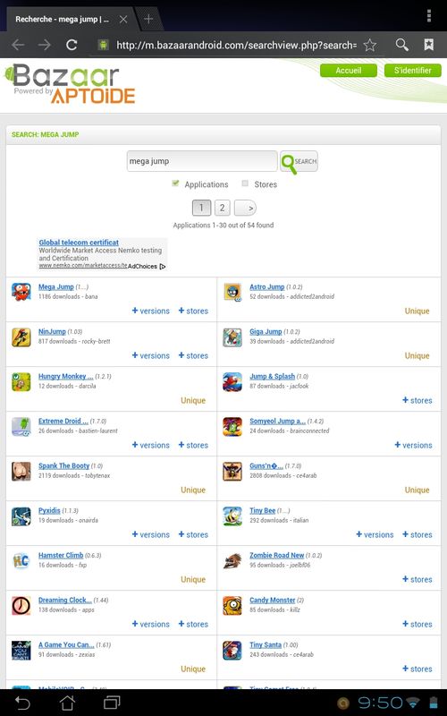 sur ma tablette samsung impossible de trouver aptoide et bazaar news dans playstore