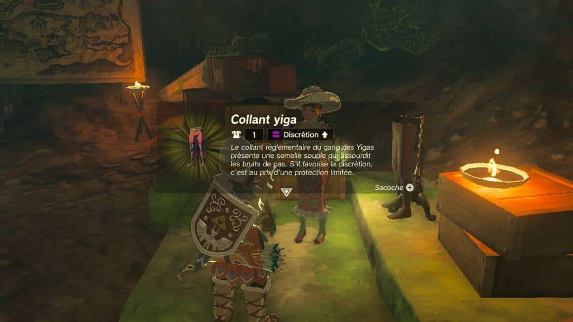 Le collant Yiga est le plus compliqué à récupérer. Vous devrez vous rendre dans le Camp Yiga Delass situé dans une grotte au niveau de la Grande Forêt d’Hyrule.
