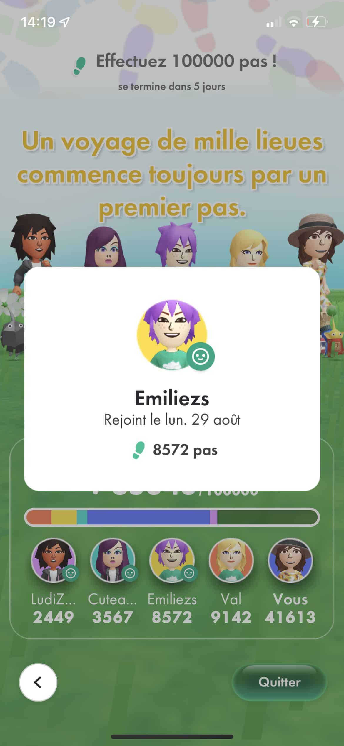 Le défi pédestre a pour objectif de faire un certain nombre de pas seul ou en équipe. Vous obtiendrez les récompenses si vous finissez le défi de marche avant la fin de la semaine.