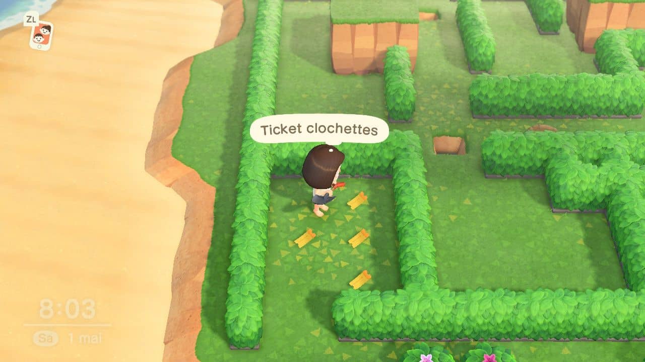 - Utilisez la pelle sur le buisson pour accéder aux 4 Tickets clochettes