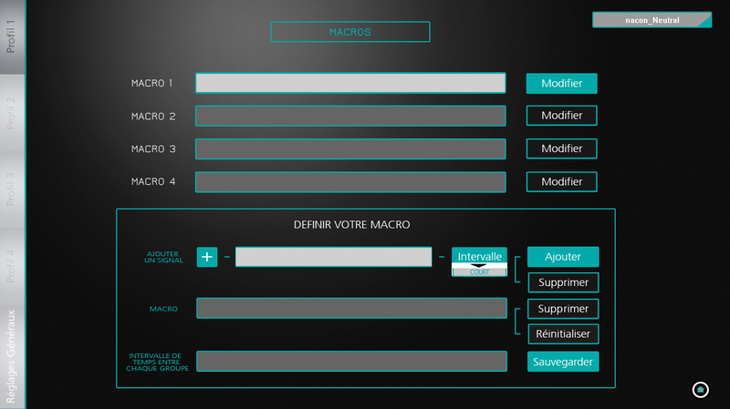 - Macros : on/off + définition des 4 macros