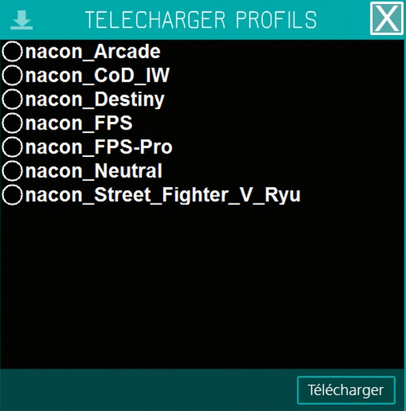 Nacon propose déjà à ses utilisateurs de télécharger 7 profils prédéfinis, la manette pouvant en enregistrer jusqu’à 4. On retrouve ainsi en téléchargement libre un profil arcade, COD, Destiny, FPS, FPS Pro, Neutre et Street Fighter. Chacun des profils apportant son lot de modifications sur la manette pour répondre au mieux aux spécificités de gameplay de chacun des jeux. L’utilisateur a aussi la possibilité de créer ses propres profils.
