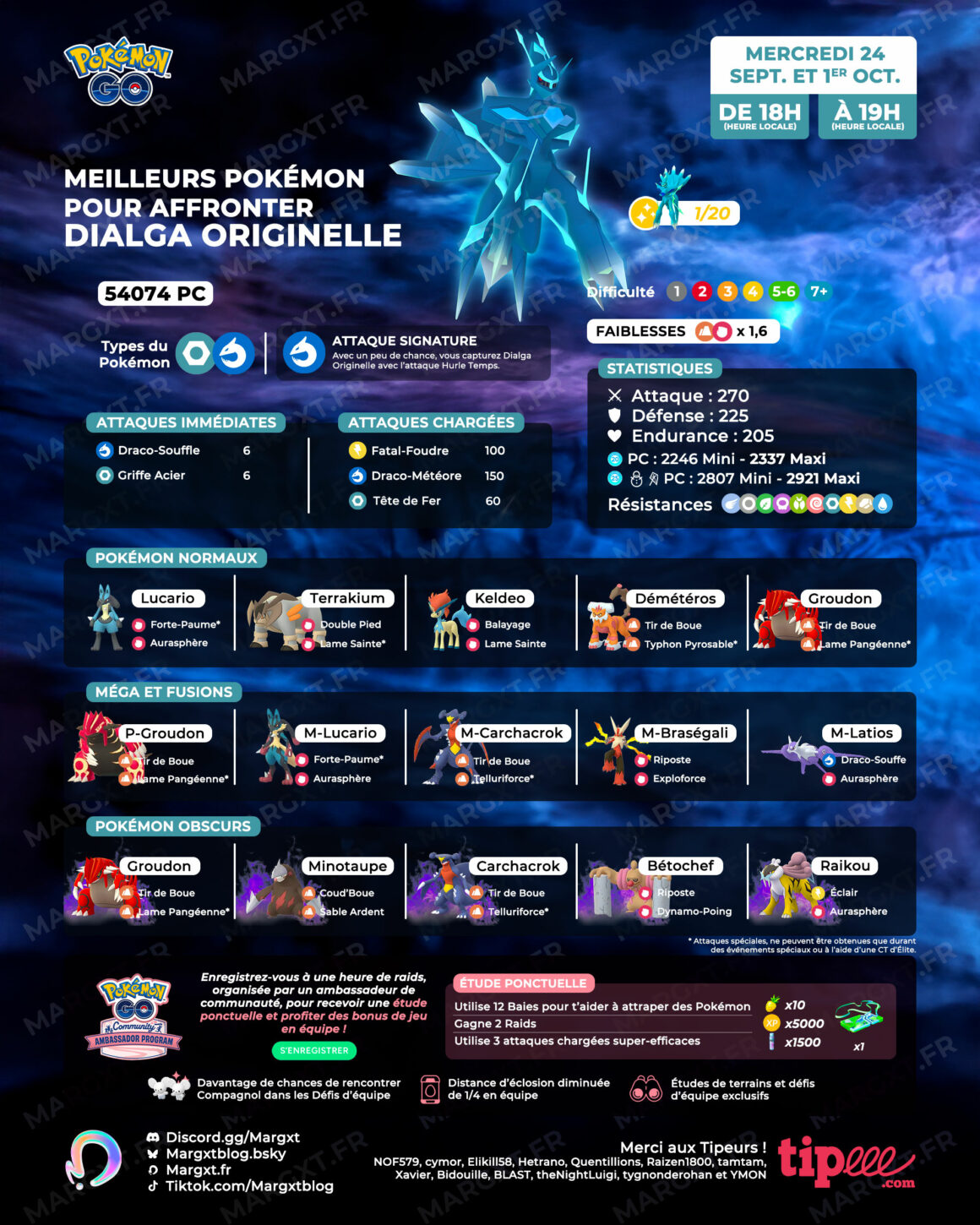 Dialga Originelle est de retour dans les raids légendaires Pokémon GO. Ce guide vous permettra de préparer votre équipe pour affronter le Pokémon.