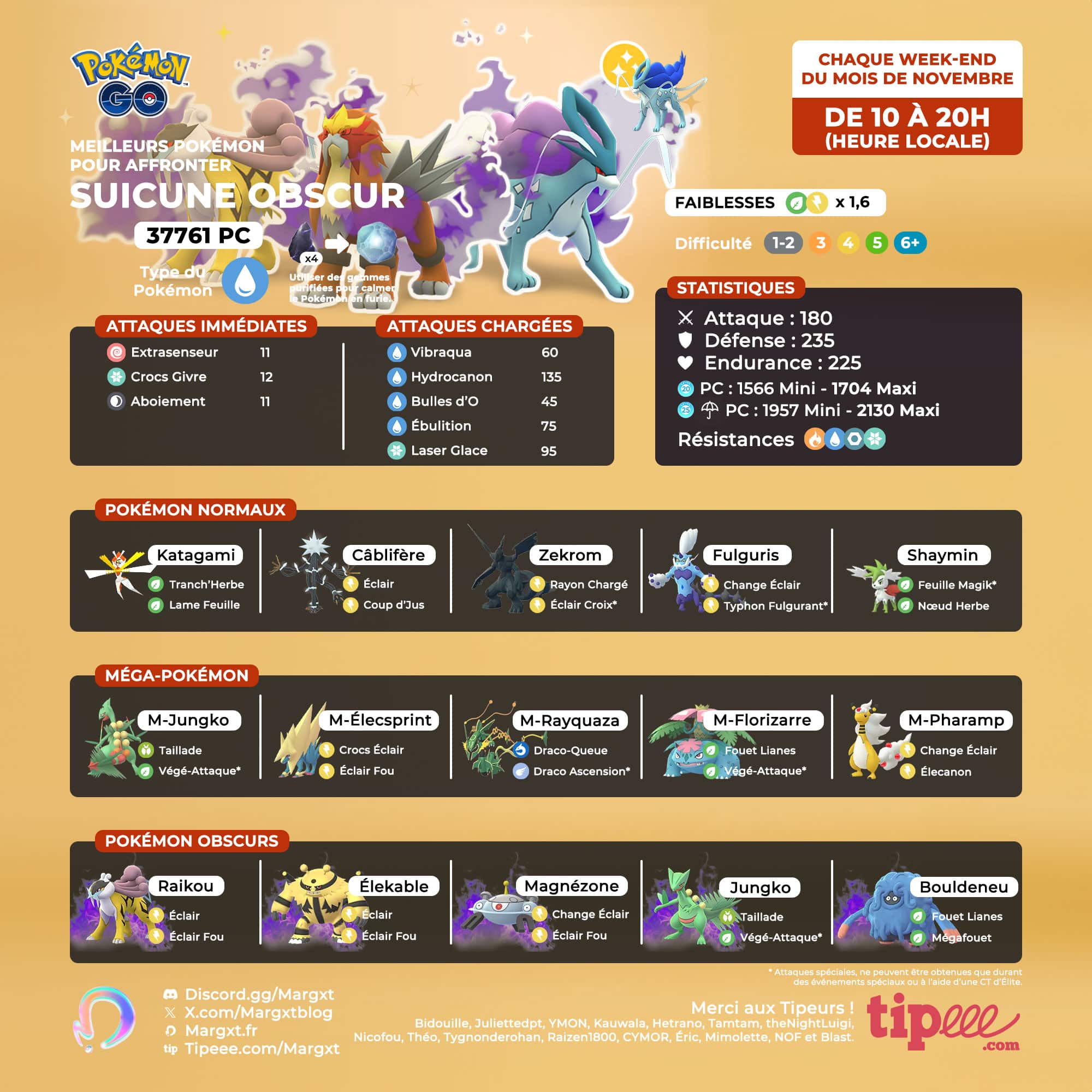 Le Pokémon légendaire Suicune revient dans les raids obscurs. Suivez le guide pour optimiser votre équipe afin de vaincre le Pokémon et le capturer.