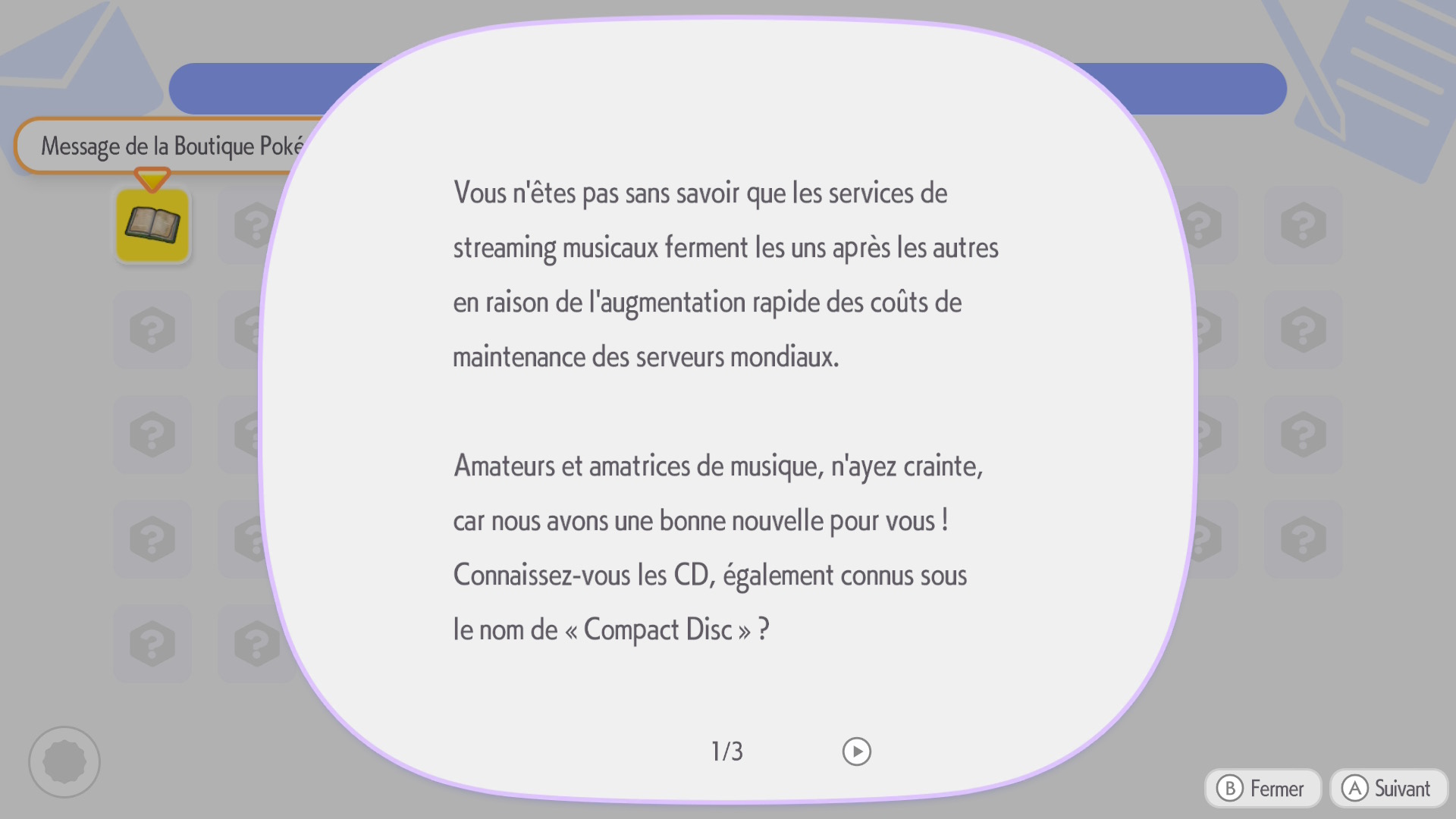 ![]() Message de la Boutique Pokémon | ![]() | ![]() |