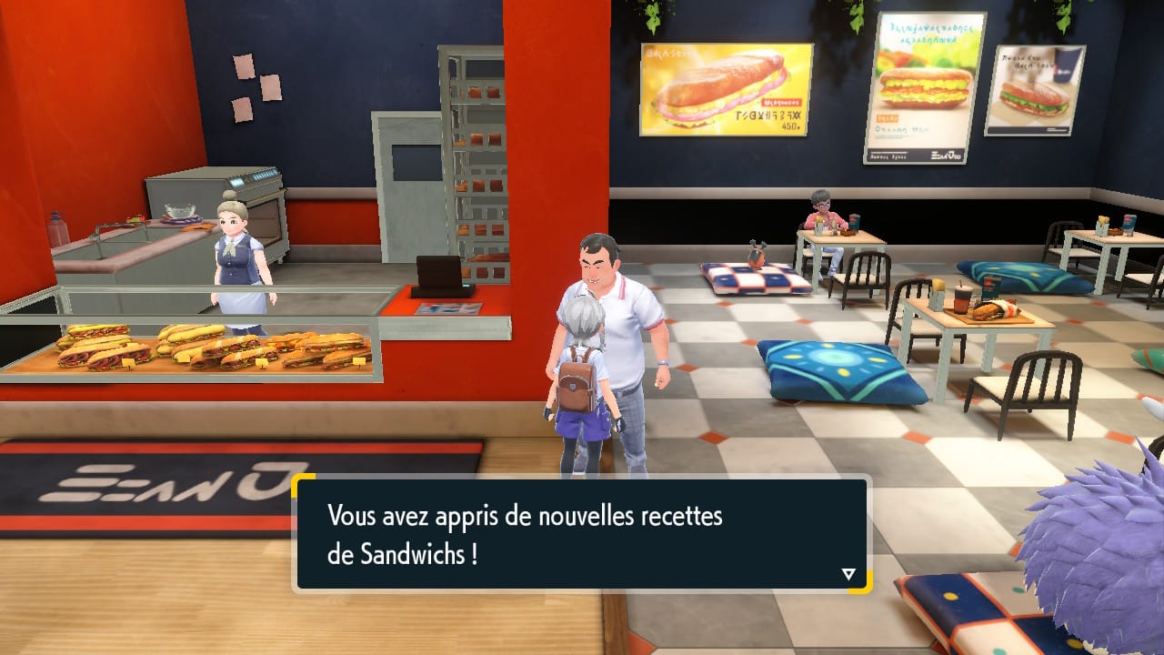 - Discutez avec les PNJs dans les boutiques qui vendent des sandwichs après avoir accompli des événements importants dans l’histoire (vaincre un champion d’arène par exemple), certains vous donneront des nouvelles recettes.