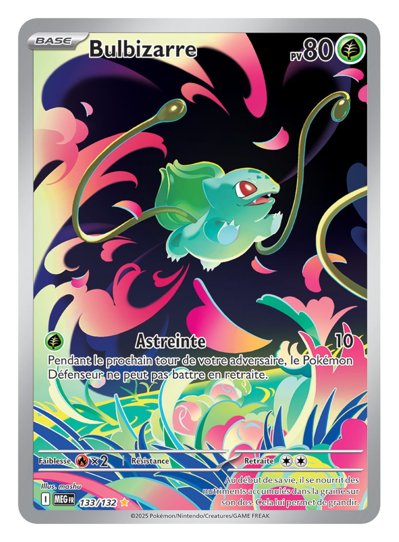 Découvrez la liste complète des cartes et packs de l’extension Méga-Évolution (MEG) du jeu de cartes Pokémon.