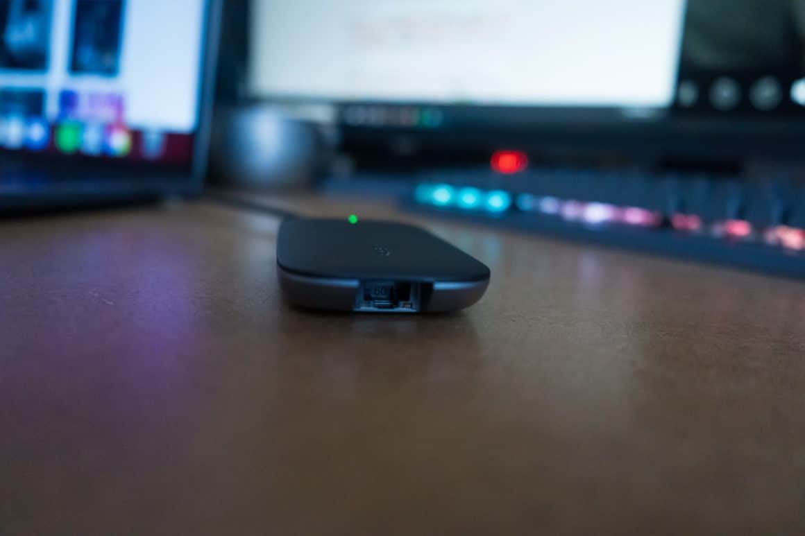 Côté design, je n’ai rien trouvé de plus « propre » avec ses bordures arrondies et sa coque en plastique noire qui allait parfaitement avec le design de mon ordinateur et sa propre coque de protection en plastique noire. Une petite housse est fournie avec l’adaptateur pour le ranger et le protéger des rayures.