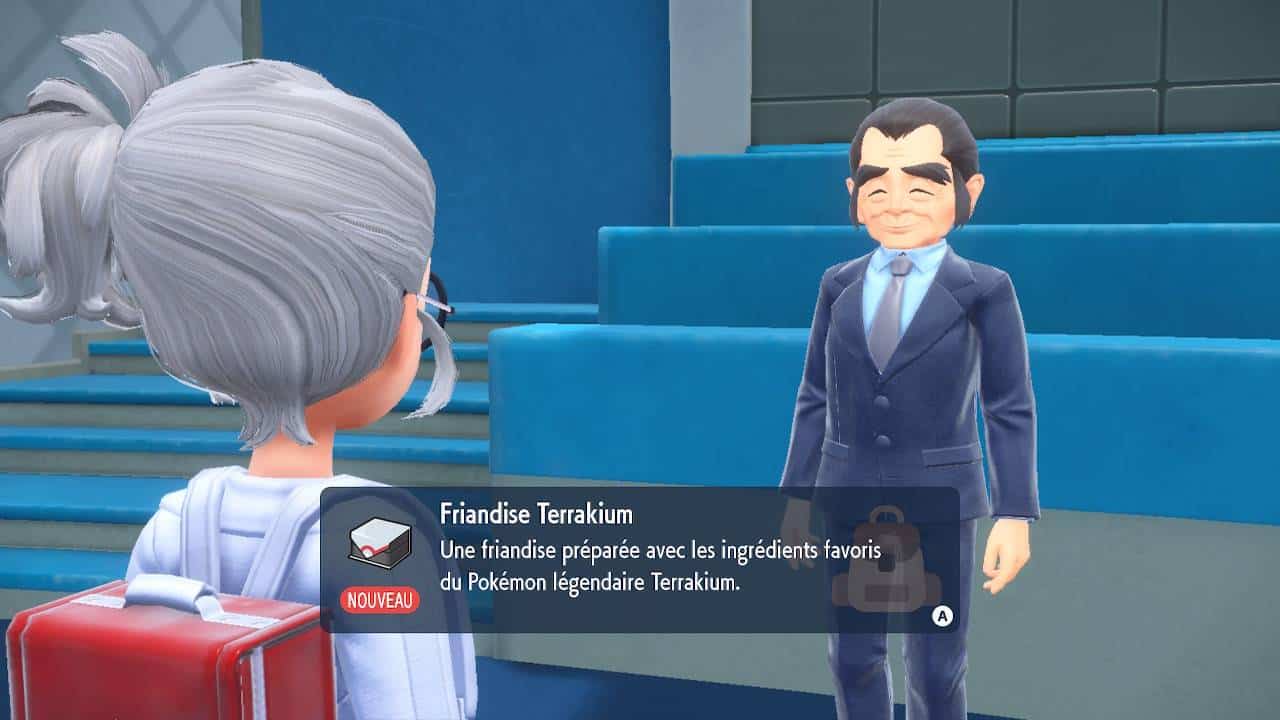 Après avoir fini le jeu, vous pouvez récupérer des friandises qui vous permettent d’obtenir des Pokémon Légendaires dont Terrakium.