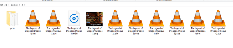 Récupérez les fichiers .bin, .cue et .png (ou .jpg) et nommez les exactement pareil. Vous n’aurez normalement aucun problème avec les jeux qui nécessitent plusieurs CD, dés le moment où vous les avez tous transférés, mais nommez l’image au nom du premier CD. Exemple ci-dessous avec Hercules.