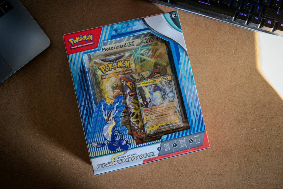 J’ai craqué pour la collection spéciale Puissance Paradoxe du JCC Pokémon qui était disponible chez mon partenaire MGS-Shop. Une collection qui met en avant les deux légendaires du jeu Pokémon Écarlate et Violet, un de chaque côté de la collection.