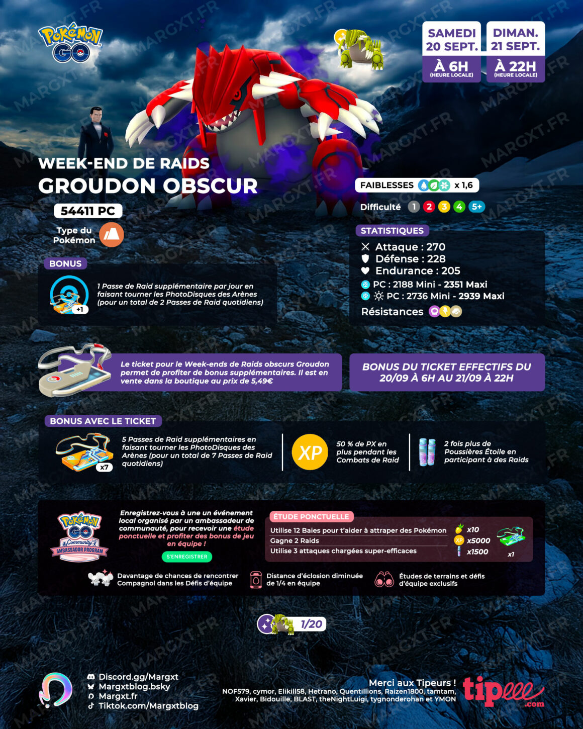 Un week-end de raids obscurs Groudon se déroulera dans Pokémon GO, l’occasion de capturer le Pokémon dans sa variante chromatique et obscur.